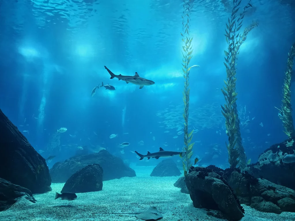 Visitors can explore these habitats across two levels (terrestrial and underwater), featuring the permanent “One Planet, One Ocean” exhibit, interactive displays on sharks, sunfish, and more—don’t miss the temporary exhibitions for a complete experience!